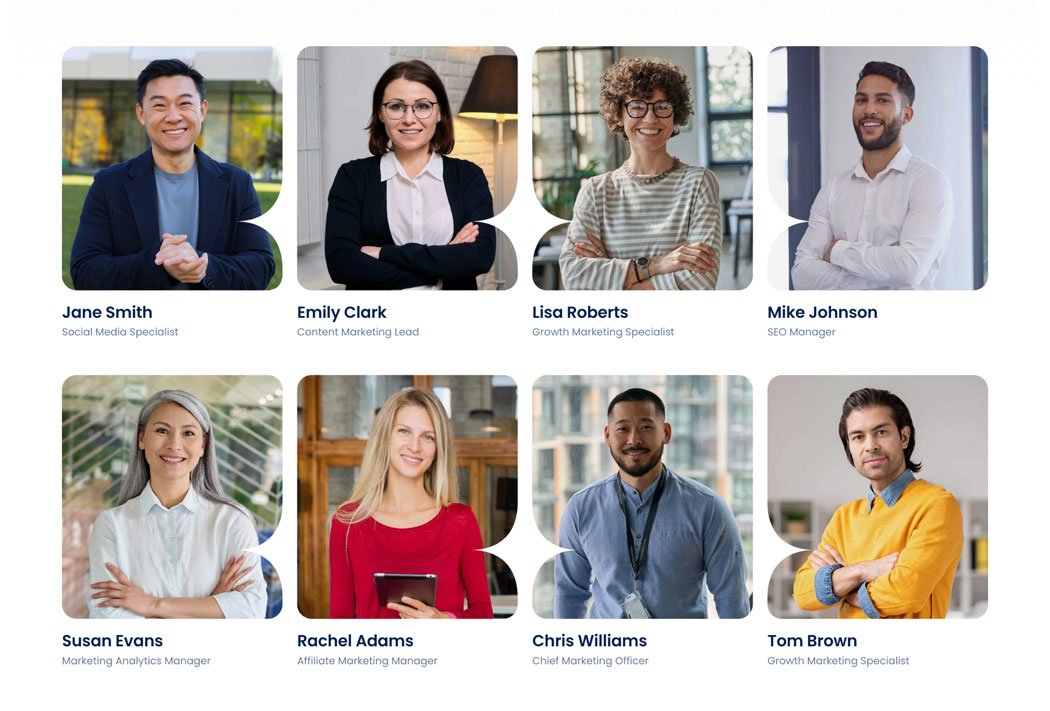 Showcase your team using our customizable team page template. This design enhances connection and credibility, helping clients connect with your brand effectively.